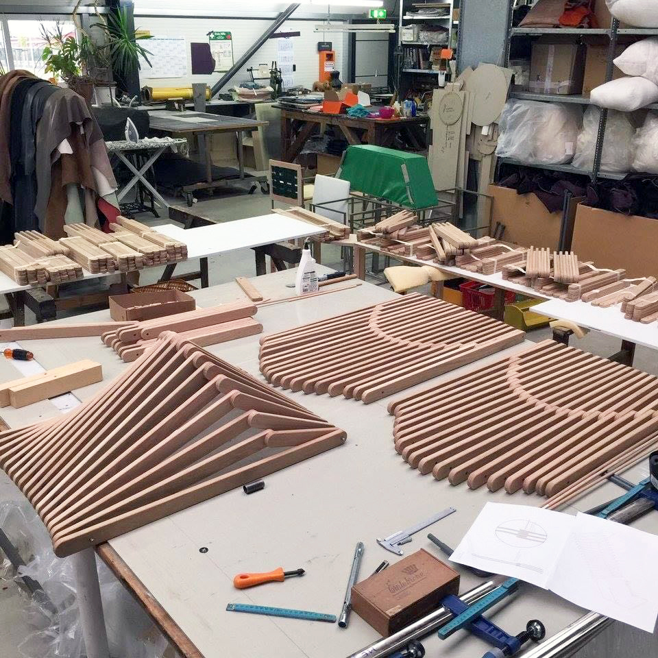 Through repetition and rhythm, the form invites both tension and release. The wood flexes gently, adapting to the body, while the metal frame anchors the composition, a quiet dialogue between material honesty and human comfort.